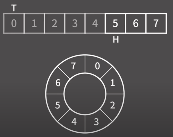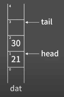 head는 가장 앞에 있는 원소의 인덱스, tail은 (가장 뒤에 있는 원소의 인덱스+1)를 가리킨다.