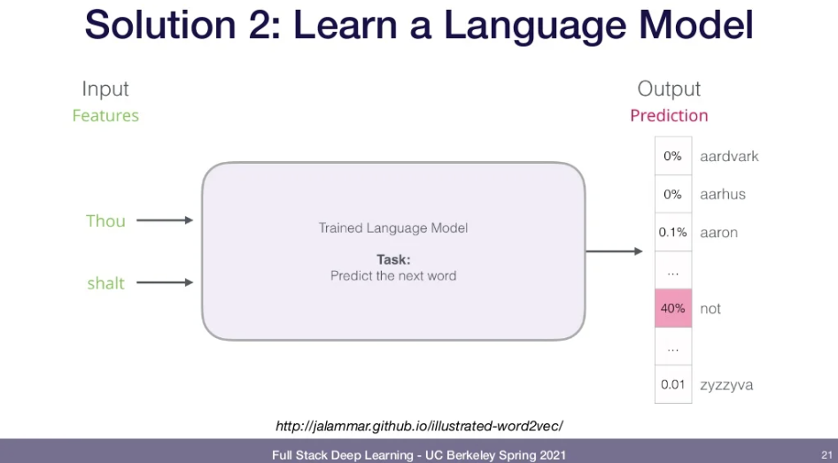- How? -> train for a very general task on a large corpus of text(e.g., wikipedia).