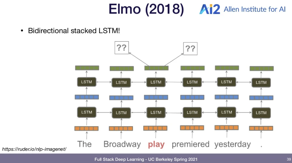 - Why not pre-train more layers and disambiguate words, learn gramar, etc? -> ELMO 에서 처음 적용함