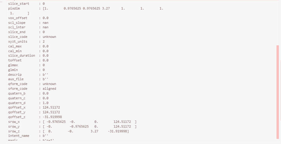 nii를 프린트해보면 저장되어 있는 모든 헤더 값이 출력된다.