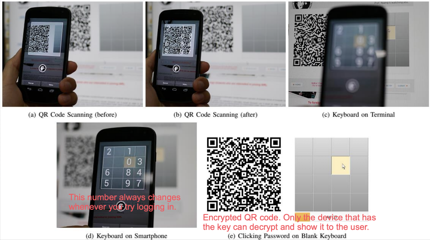 - 이때 사용되는 QR은 encrypted된 형태여서, key를 가지고 있는 mobile에서만 화면을 볼 수 있다.